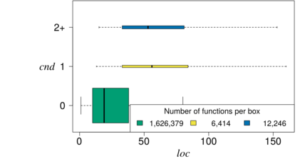 The following picures visualize the relationshipt between preprocessor use and functions size.